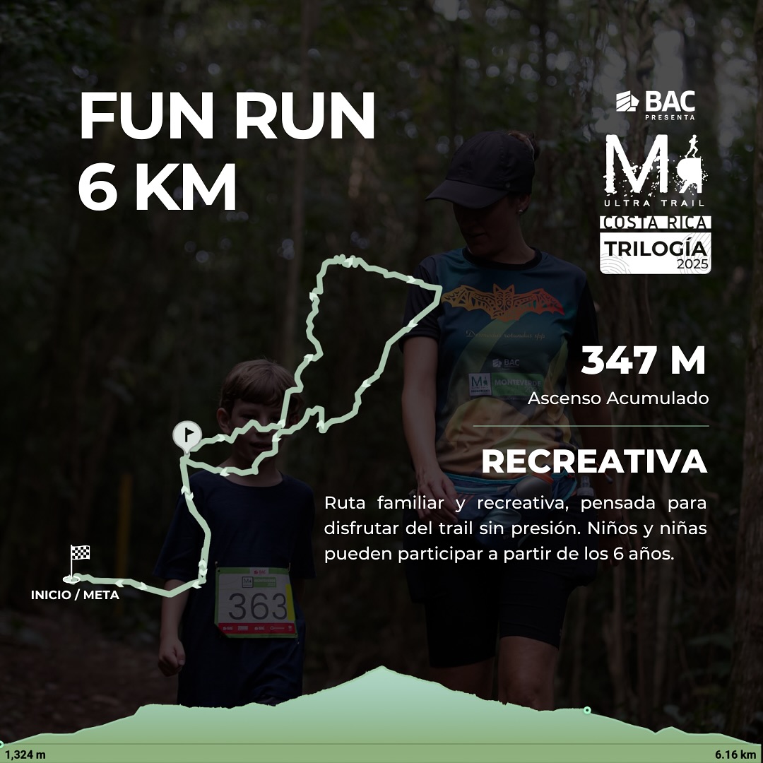 Descripción: Moonrun Monteverde es una clásica del trail costarricense, que recorre lo mejor de la mágica zona de Santa Elena y Monteverde entre bosques, ríos, potreros y vistas espectaculares. Ofrece recorridos para todos los gustos, desde el Fun Trail de 7k hasta la Ultra Trail de aproximadamente 63 kilómetros, pasando por el Sprint Trail de 14k, el Adventure Trail de 25k y el Maratón Trail de 35k.