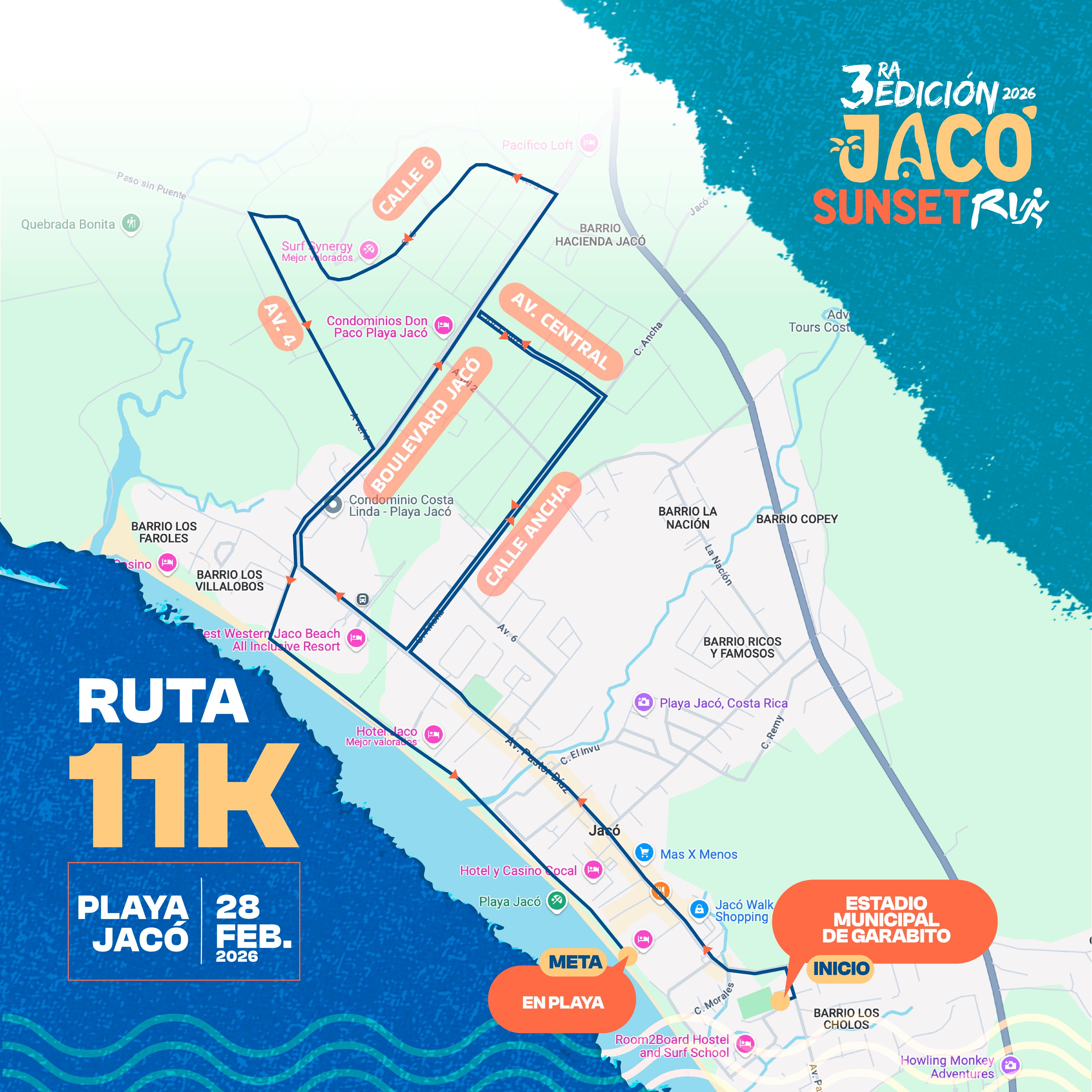 Sábado 28 Febrero 2026 | 3:30 pm | Jacó | 5-11 km | $42