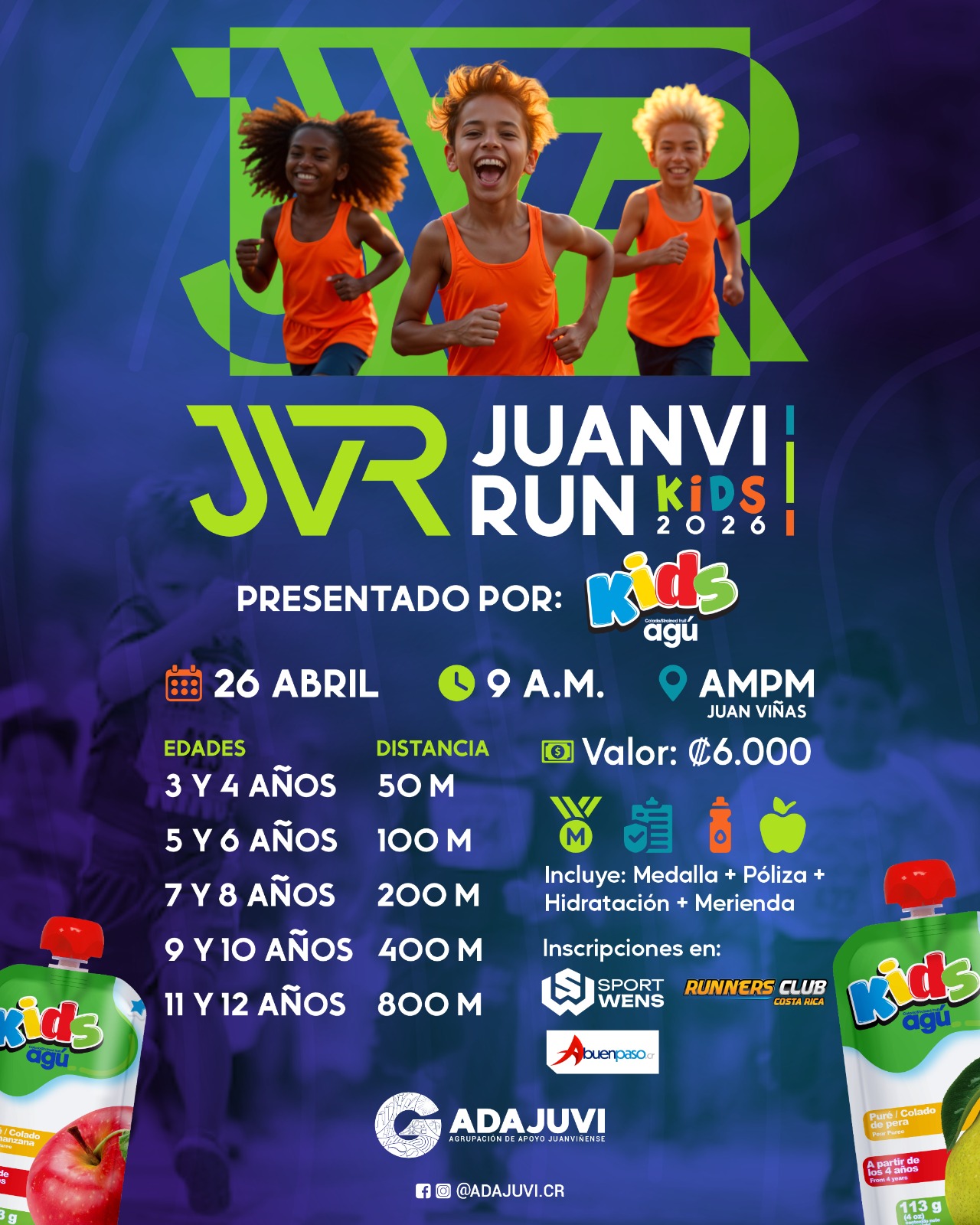 Domingo 26 Abril 2026 | 7 am | Juan Viñas | 5-10 km y kids | ¢6000-¢16.000