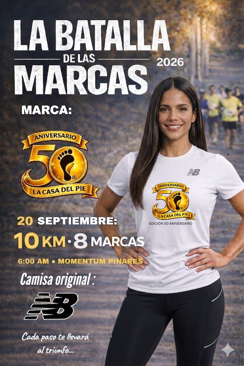 Descripción: La segunda edición de la carrera La Batalla de las Marcas será el domingo 20 de setiembre a partir de las 6 a.m. Tendrá un recorrido de 10k con salida y meta en Momentum Pinares. Esta no es una carrera común y corriente: ¡es una lucha entre las marcas! Habrá 8 marcas en total, y cada participante, al inscribirse, podrá escoger a cuál marca va a representar. Al final se saca un promedio de los tiempos y se define la marca ganadora. Cada marca tendrá una camisa New Balance con color distinto. También habrá carreras para niños entre los 4 y 12 años.