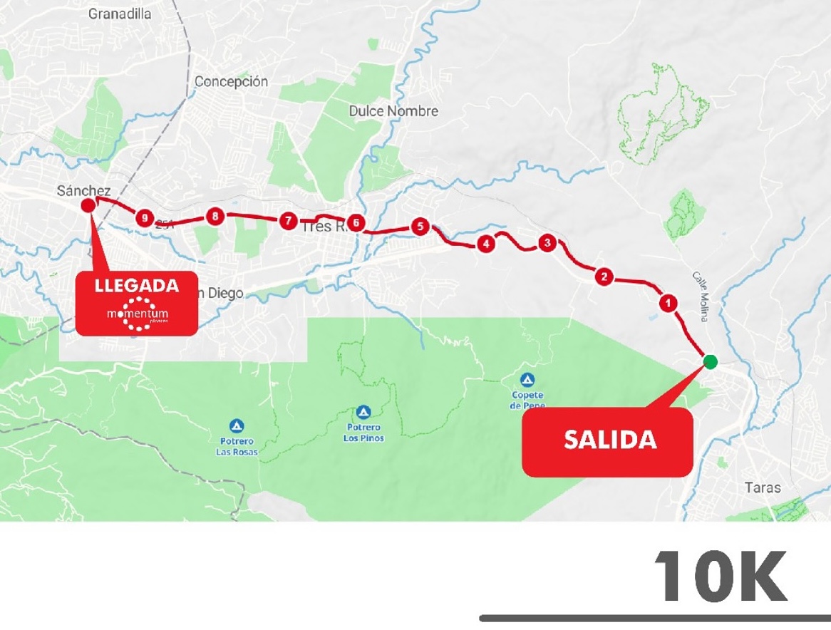 Descripción: La Media Maratón Credix ya es toda una clásica, con sus tradicionales recorridos rapidísimos de 5k, 10k y 21k, todos con meta en Momentum Pinares. Los 5k saldrán desde Tres Ríos, los 10k desde Ochomogo y los 21k desde Paseo Metrópoli, en Cartago, e incluirán la bajada desde Ochomogo hasta Pinares. Los 10k y 5k son pura bajada lo cual favorece lograr excelentes tiempos. La salida de los 21k será a las 5:00 a.m., los 5k y 10k saldrán a las 5:30 a.m.