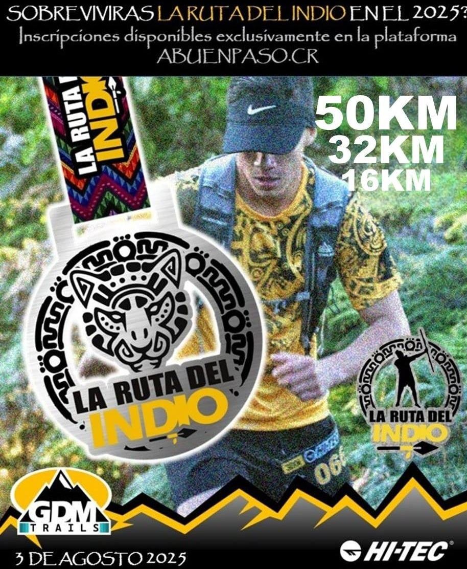Descripción: La cuarta edición de Sobrevive La Ruta del Indio tendrá recorridos desafiantes por las fantásticas montañas de San Cristóbal Norte, en Desamparados. Tendrá rutas de 16k, 32k y una ultra de 50k cargados de naturaleza y una altimetría que parece una montaña rusa, como auténtica carrera de trail. Los 50k saldrán a las 5:00 a.m., los 32k a las 6:30 a.m. y los 16k a las 7:00 a.m. (Pronto mapas y altimetría actualizados).